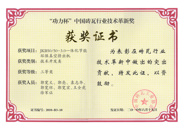 功力杯 中國磚瓦行業(yè)技術(shù)革新獎.