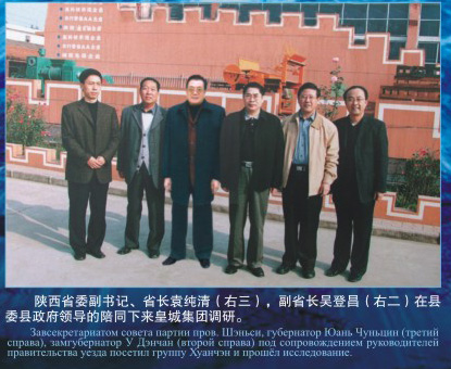 陜西省委副書記、省長袁純清(右三),副省長吳登昌(右二)在縣委政府領(lǐng)導(dǎo)的陪同下來皇城集團調(diào)研
