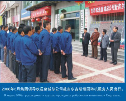 2008年3月集團領(lǐng)導(dǎo)歡送皇城總公司赴吉爾吉斯坦國磚機服務(wù)人員出行