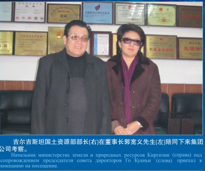 吉爾吉斯坦國土資源部部長(右)在董事長郭寬義先生陪同下來集團公司考察