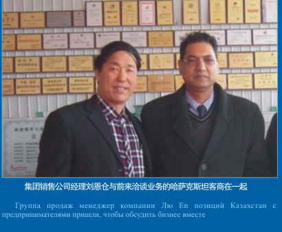 集團銷售經(jīng)理與前來洽談業(yè)務(wù)的哈薩克斯坦客商在一起